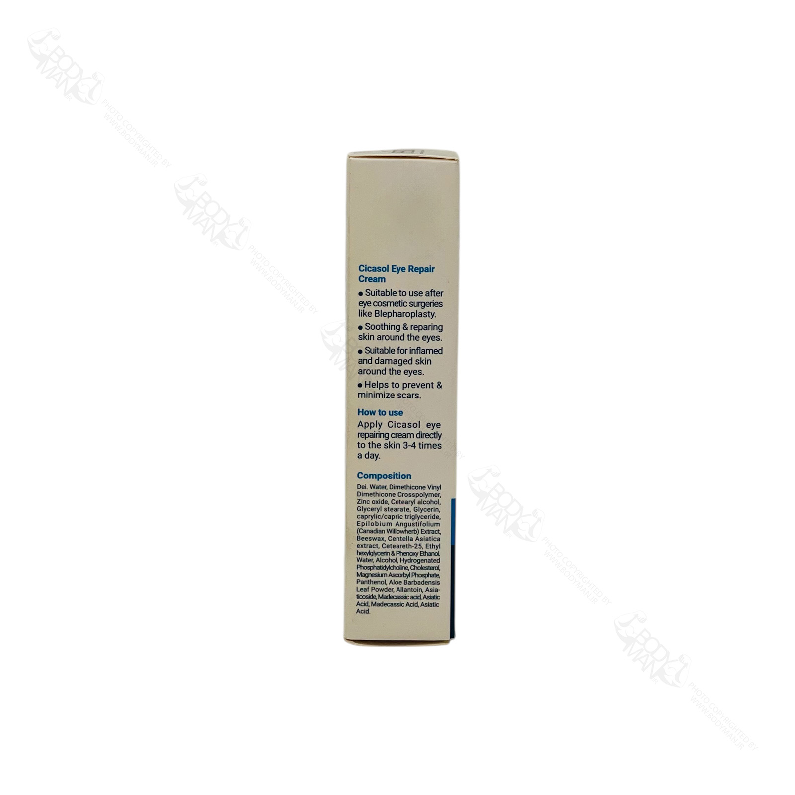 - کرم را با حرکات ضربهای بسیار ملایم بر روی پوست تمیز پلک یا ناحیه آسیبدیده پخش کنید. از ماساژ دادن شدید خودداری نمایید.