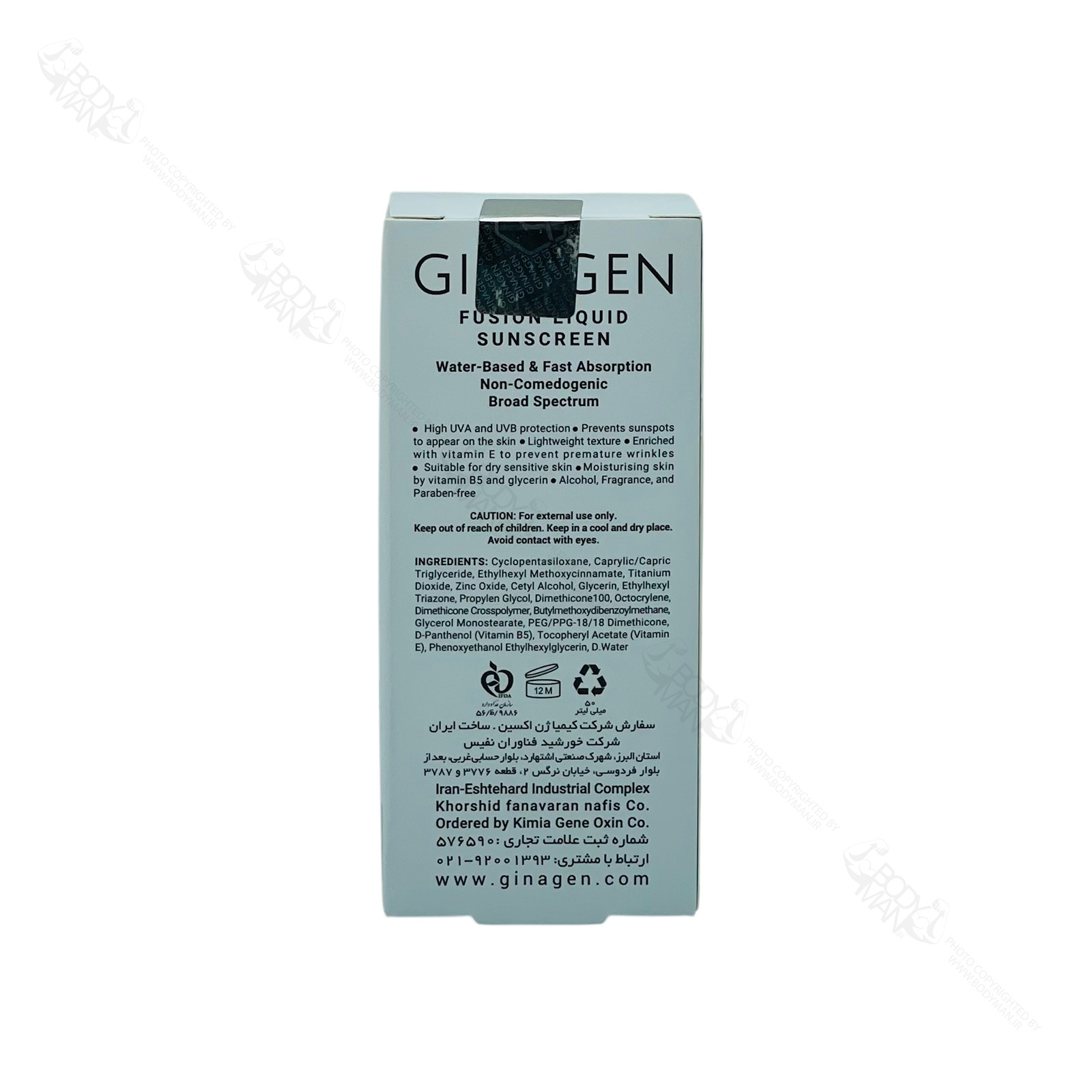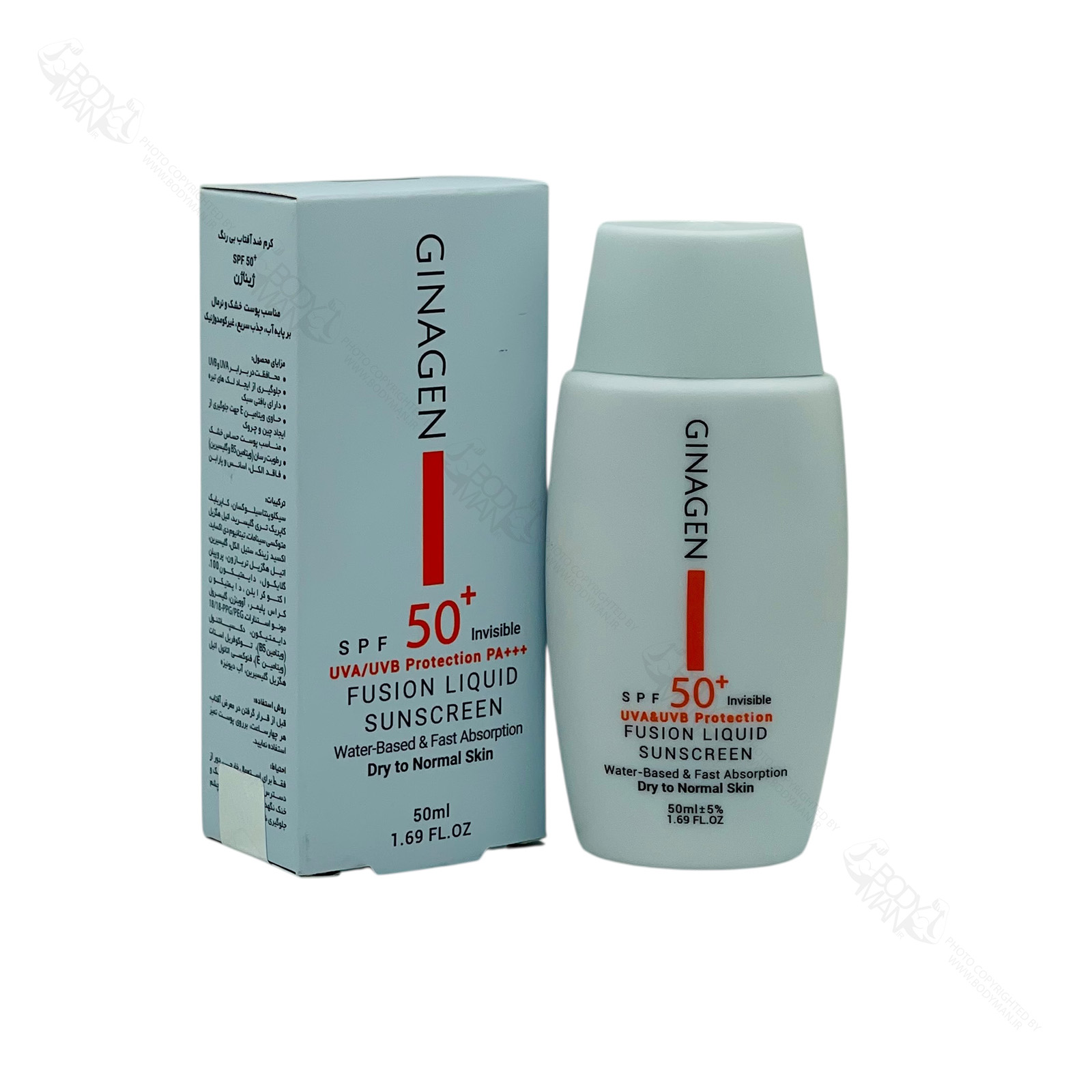ضد آفتاب لیکوئید بی رنگ اس پی اف ۵۰ پلاس پوست خشک و نرمال ژیناژن | GINAGEN FUSION LIQUID SUNSCREEN SPF 50 Plus