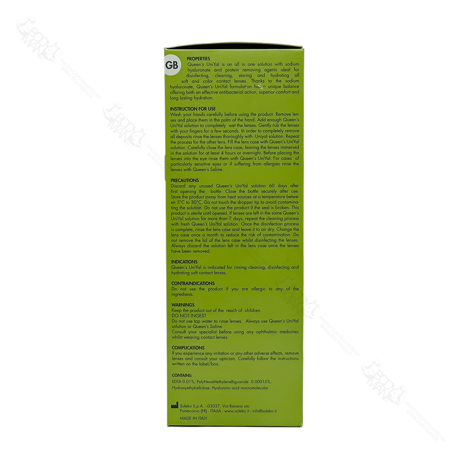 چشمان شما شایسته بهترین مراقبت هستند. محلول لنز چندمنظوره Queen’s Uniyal، محصولی بینظیر از کمپانی ایتالیایی Soleko، یک راه حل کامل و جامع برای تمام نیازهای لنزهای تماسی نرم شماست. این محلول با فرمولاسیون پیشرفته و غنی شده با اسید هیالورونیک، نه تنها لنزهای شما را به طور کامل ضدعفونی و تمیز میکند، بلکه با ایجاد یک لایه رطوبت پایدار، راحتی بینظیری را در طول روز برای چشمان شما به ارمغان میآورد.