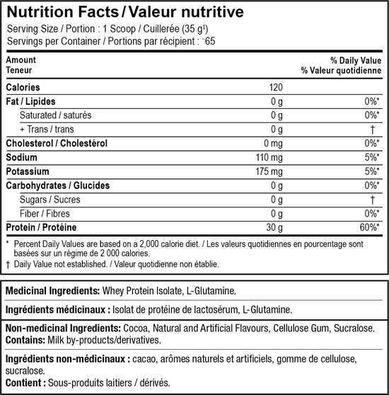 دارای ۳۰ گرم وی پروتئین ۱۰۰٪ ایزوله در هر وعده مصرفی